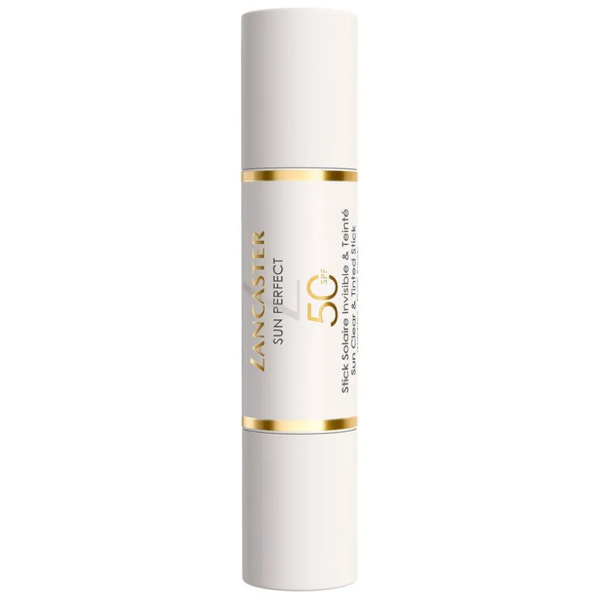 Sun Perfect Sun Clear & Tinted Stick SPF50 er en dobbeltsidig pinne som gir en umiddelbar mattende effekt med sin klare side og en umiddelbar uskarp effekt med sin tonede side. Sun Perfect er Lancasters mest avanserte globale solpleie- og antialdringsserie, som kombinerer solpleie- og hudpleieekspertisen for bruk hele året. Dens Full Light Technology og Anti-ageing Technology gir den bredeste solbeskyttelsen samtidig som den forebygger og hjelper til med å synlig korrigere rynker, fine linjer og mørke flekker.