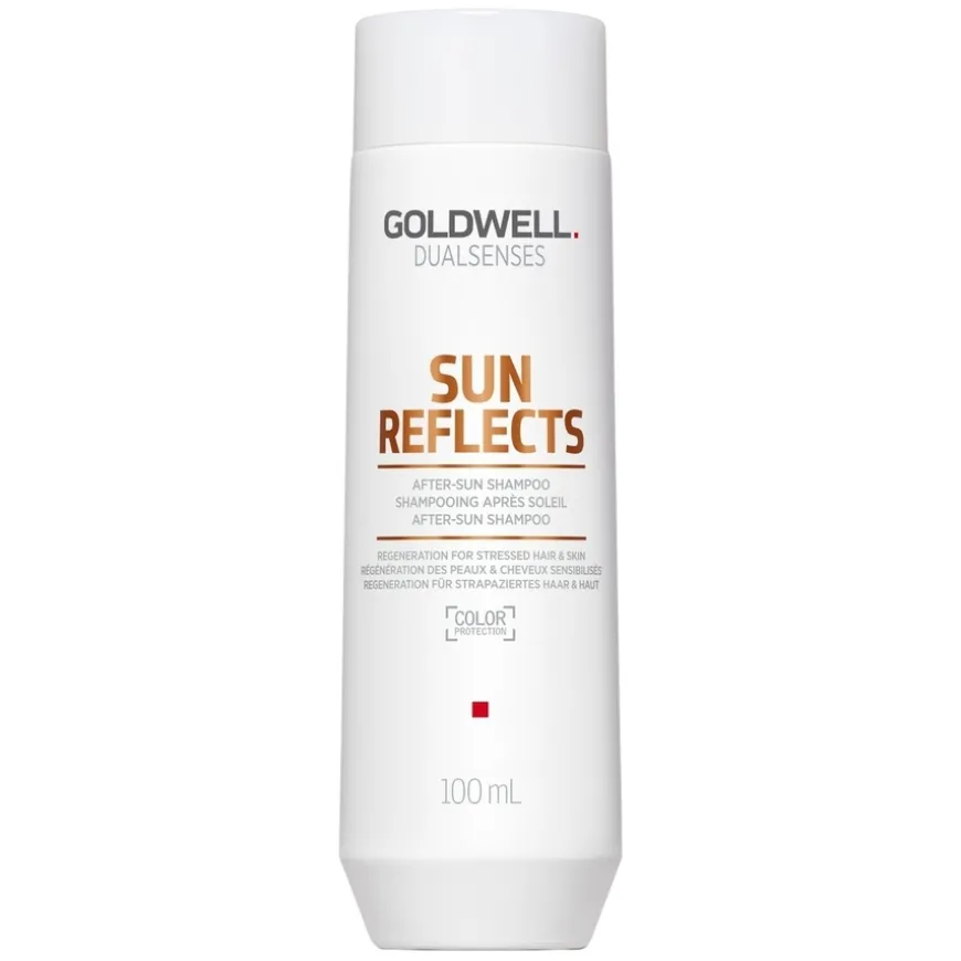 Sun Reflects Shampoo er en skånsom og pleiende shampoo for hår og kropp som har vært utsatt for sol, saltvann og klor. Den er beriket med microPROtec kompleks og panthenol som gir umiddelbar pleie og fuktighet til både hår og hud. Shampooen fjerner effektivt rester av klor og saltvann, og gjenoppretter hårets og hudens naturlige balanse etter soleksponering. Den unike FadeStopFormula er like skånsom som vann og bidrar til å bevare hårfargen ved hver vask. Perfekt etter en dag på stranden eller i bassenget.