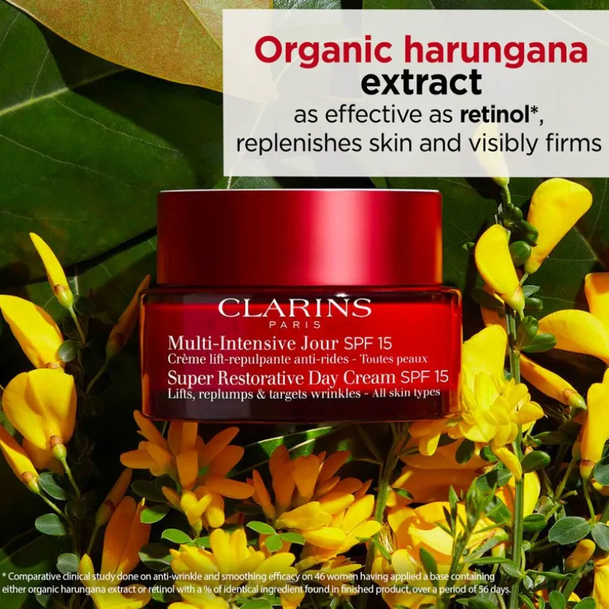 Super Restorative Day Cream er en reparerende og nærende dagkrem som hjelper huden med å gjenvinne fasthet og spenst. Super Restorative Day Cream er for alle kvinner i begynnelsen av 50-årene som har fått hormonelle endringer i huden som følge av aldring, og som opplever at huden har mistet spenst, fått dypere linjer og ujevn hudtone. For alle hudtyper. Med SPF 15.