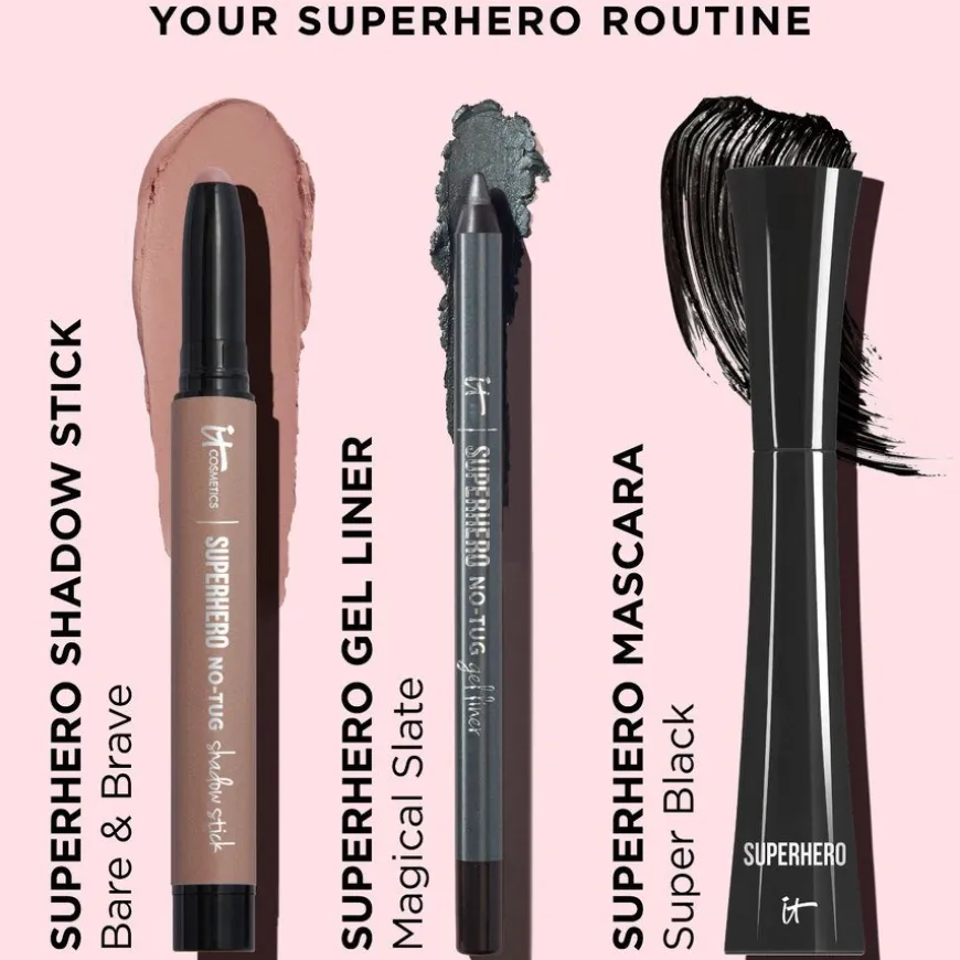 Superhero No-Tug Eyeshadow Sticks er alt du elsker med en holdbar øyenskygge, nå i en praktisk øyenskyggestift i kremform. Øyenskyggestiften inneholder It Cosmetics eksklusive No-Tug Technology™, som er superenkel å tone ut og glir lett over øyelokket uten å irritere det sarte øyeområdet. De 12 vakre nyansene som fås i matte finish og perlemorsfinish, kan bygges opp slik at du enkelt kan skape ubegrensede øyelooks. I tillegg legger ikke produktet seg i folder, slik at du ikke trenger å bekymre deg for at det skal legge seg i globallinjen. Du får de vakreste øynene med et enkelt strøk!