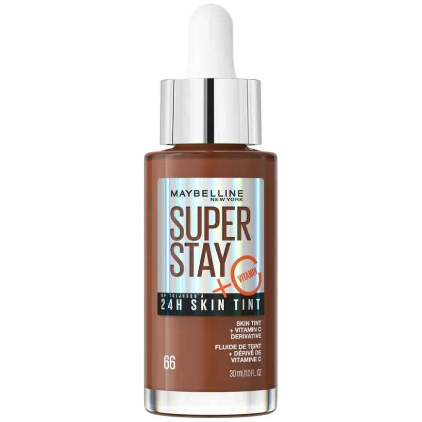 Superstay 24H Skin Tint fra Maybelline – en dråpe kan gjøre stor forskjell for dekning, pleie og følelsen på huden! Formelen er beriket med Cg-vitamin og gir huden en frisk glød samtidig som den dekker ujevnheter og rødhet. Sitter i opptil 24 timer*, føles behagelig på og etterlater huden med en myk og fuktet følelse. Maybelline New York’s Superstay 24H Skin Tint har vegansk** formel, er velegnet til sensitiv hud og tetter ikke porene. *Selvevaluering, 110 personer. **Uten ingredienser av animalsk opprinnelse.