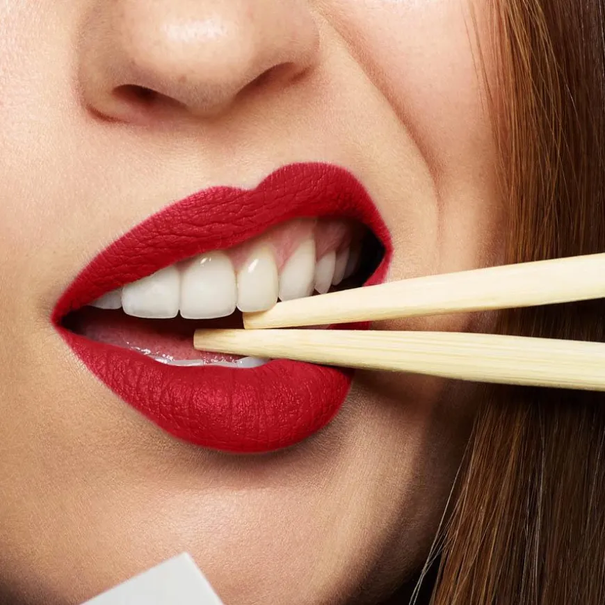 - Påfør deretter leppestiften på hele underleppen.