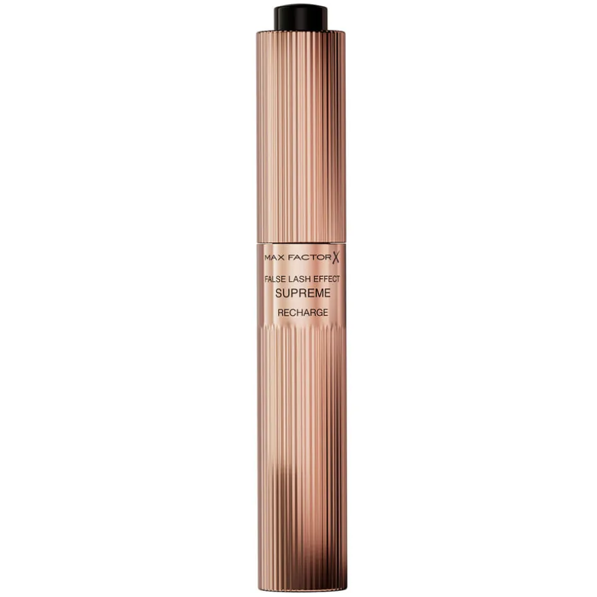 False Lash Effect Supreme Recharge Mascara gir dramatisk volum og fyldige vipper uten behov for falske vipper. Med en innovativ, refillbar design reduserer den plastavfall med 70 % per refill. Den serum-infuserte formelen, beriket med keratin, pleier vippene for et sunnere utseende etter fire ukers bruk. Den unike vippebørsten sørger for jevn påføring fra rot til spiss, og gir separerte, definerte vipper. Perfekt for deg som ønsker både volum og bærekraft i én mascara.