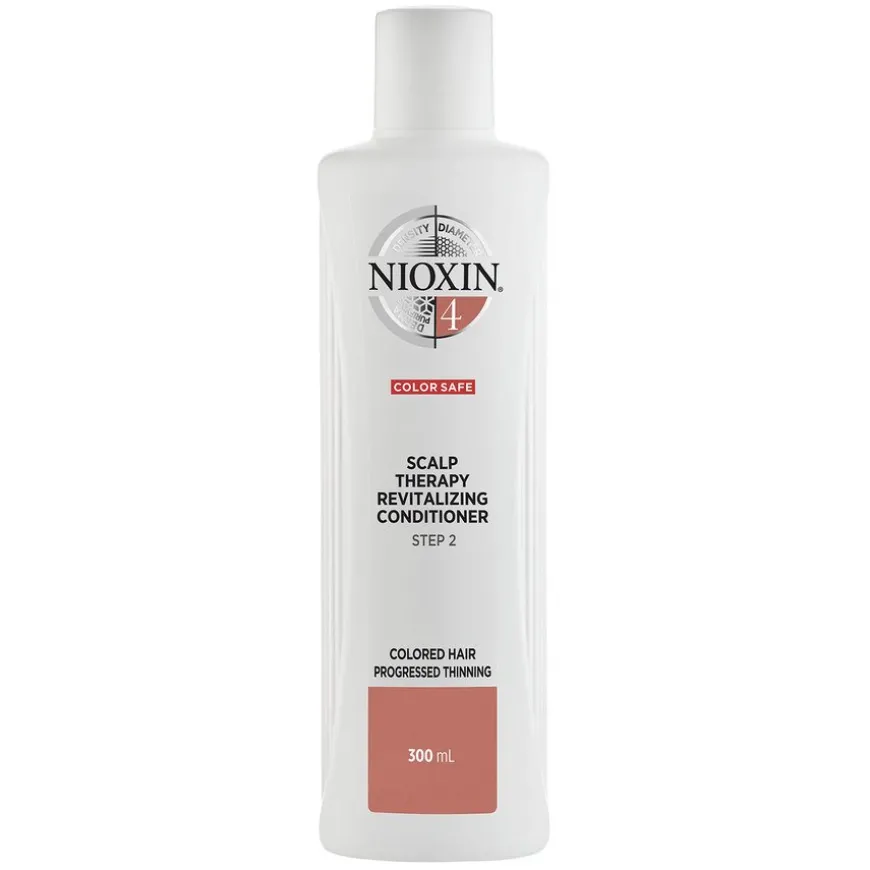 Nioxin System 4 Scalp Therapy Revitalising Conditioner for farget hår med progressiv tynning er det andre trinnet i en tredelt Nioxin-rutine, spesielt utviklet for å styrke håret og forebygge brukne hårstrå.