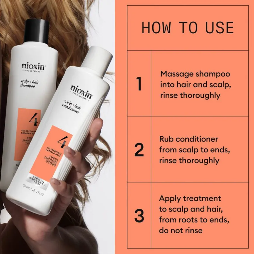 - Nioxin System 4 for tykkere, fyldigere hår og gjenopprettet fuktighetsbalanse.