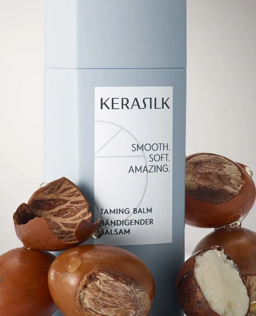 Taming Balm er en rik hårkrem som glatter ut og gjør håret mykt umiddelbart. Den gir langvarig kontroll og gjør håret lett å håndtere, samtidig som den beskytter håret mot luftfuktighet i opptil 72 timer. Med varmebeskyttelse. Den har en 100 % vegansk formel og er beriket med Biomimetic Silk og sheaolje.