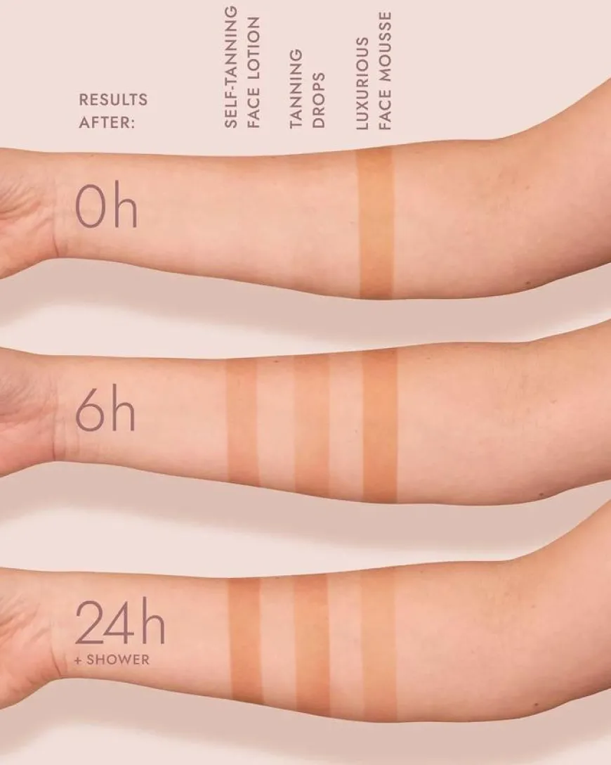- Unngå lotion med silikonolje da det reduserer effekten av DHA.