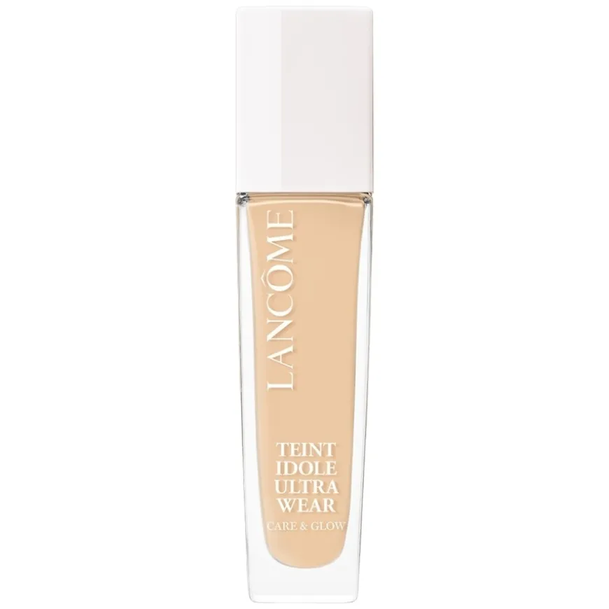 Lancôme Teint Idôle Ultra Wear Care & Glow 24H Healthy Glow Foundation er en glødgivende foundation som gir middels, byggbar dekning og en frisk, strålende finish som varer i opptil 24 timer. Den unike formelen inneholder 82 % hudpleieingredienser, inkludert hyaluronsyre, som tilfører fuktighet gjennom hele dagen og gir en sunn, naturlig glød. Foundationen fremhever ansiktstrekkene og fanger lyset på en naturlig måte, samtidig som den føles lett og behagelig på huden. Den er egnet for alle hudtyper, inkludert tørr og sensitiv hud, og kommer i 30 ulike nyanser for en perfekt match.