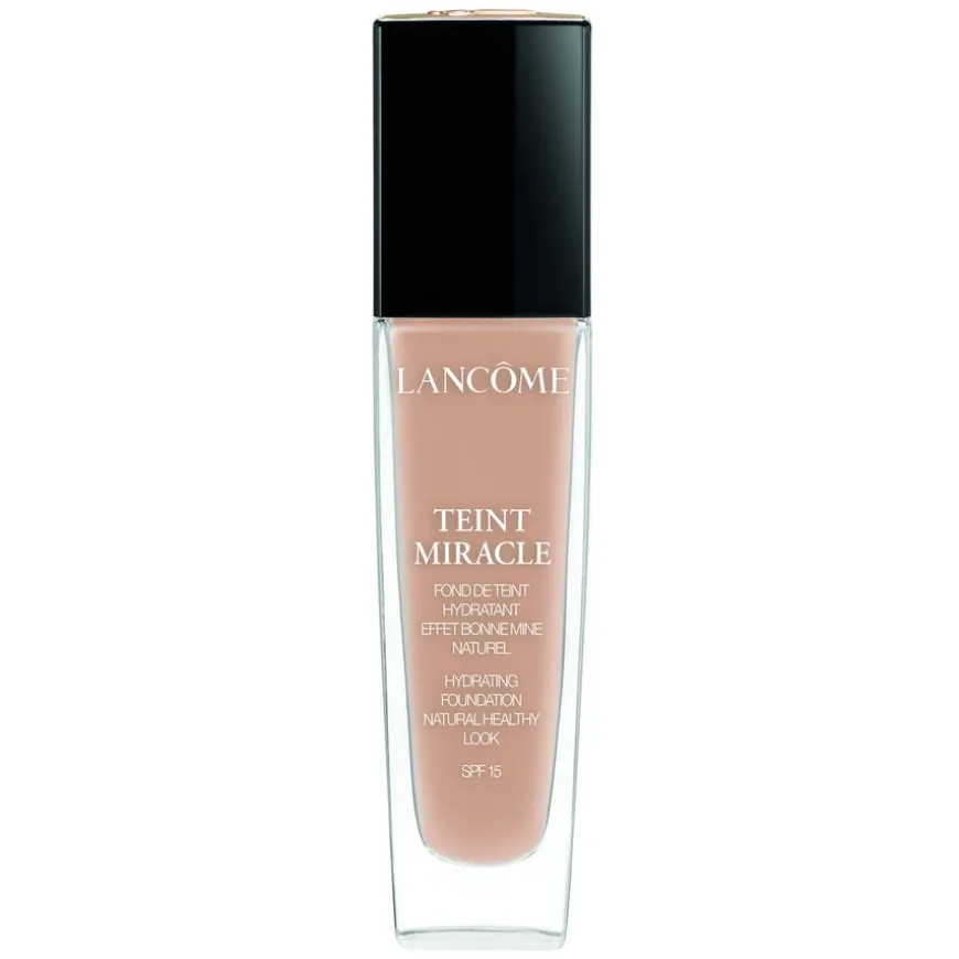 Lancôme Teint Miracle Foundation er en flytende, fuktighetsgivende foundation med SPF15 som gir huden et jevnt og naturlig utseende med en vakker utstråling. Lancôme Teint Miracle har en lett til medium dekkevne.