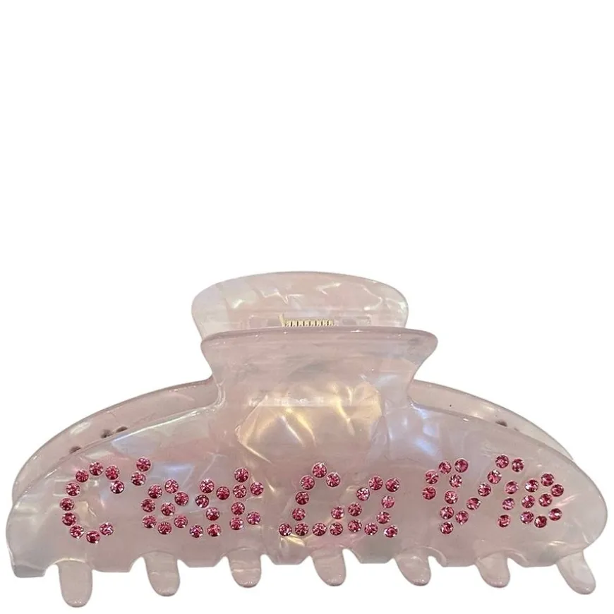Text Hair Claw er en elegant og stilfull hårklype dekorert med glitrende krystaller. Med en størrelse på 10 cm gir den et godt grep og sitter komfortabelt i håret. Den kommer i ulike farger og med forskjellige tekster, noe som gir et personlig og trendy uttrykk. Perfekt for både hverdagsbruk og festlige anledninger.