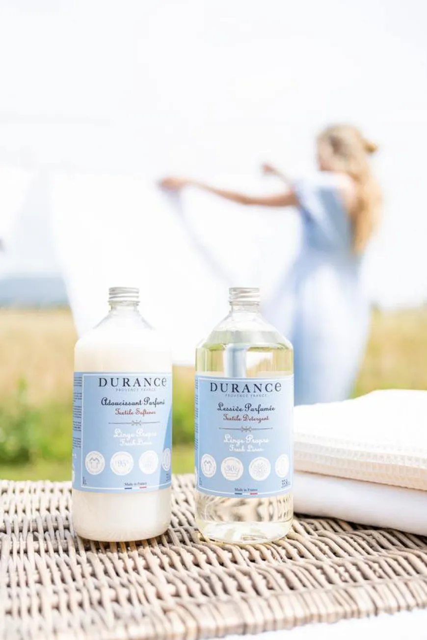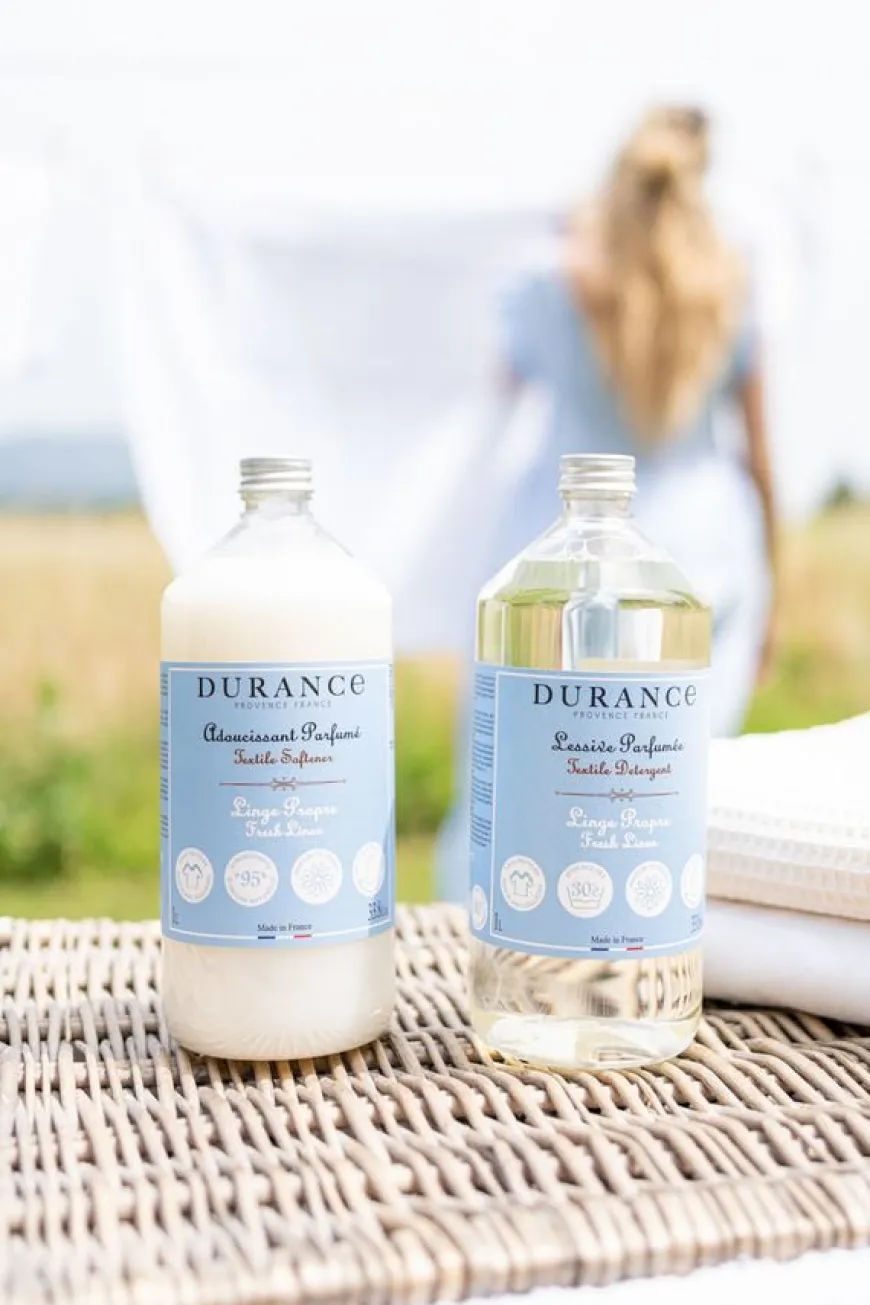Textile Softener Fresh Linen er en tøymykner med duft av fresh linen som som gjør alle tekstiler herlig myke og velduftende. Som en mild vind som brer seg over et blått hav av linblomster. En pudderaktig og delikat duft av nyvasket tøy som nettopp er tatt ned fra klessnoren. En mild blomsterduft med undertoner av renhet og komfort. Duften skaper en beroligende atmosfære og en følelse av velvære. Ikke tilsatt fosfat. Passer til både hånd og maskinvask.