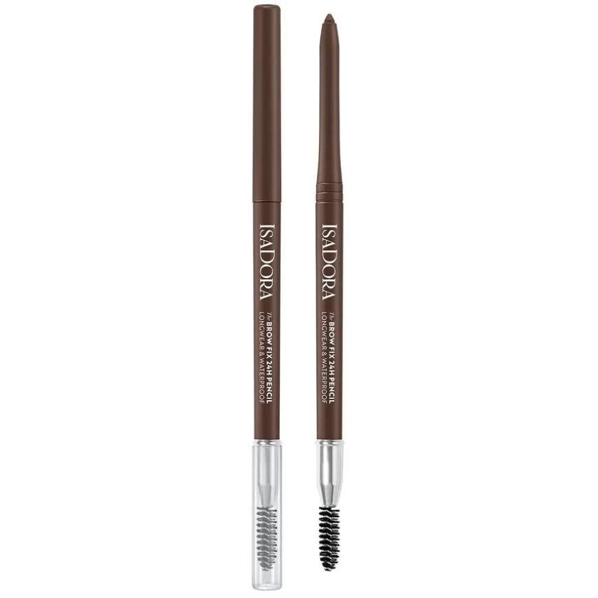 The Brow Fix 24h Pencil Longwear & Waterproof er en øyenbrynspenn som fyller, fikser og former øyenbrynene dine. Produktet holder hele dagen og har en naturlig formel. IsaDoras Brow Fix 24H Pencil har en uttrekkbar penn for rask og presis fylling, samt en myk børste med mikrobørster for å enkelt blende og forme øyenbrynene dine.