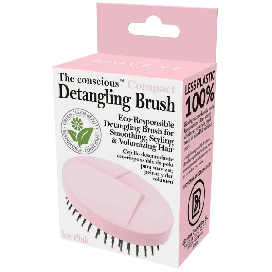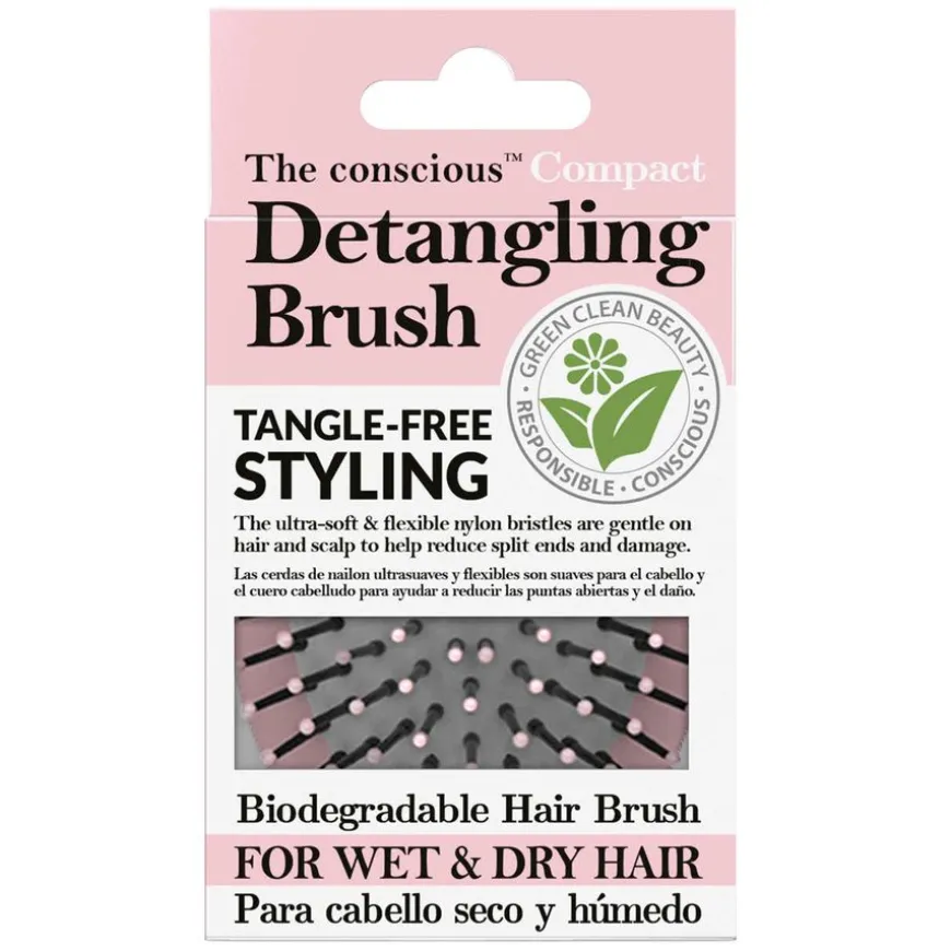 The Conscious™ Compact Detangling Brush Biodegradable Wet & Dry Brusher en børste for å glatte ut, style og gi volum til håret. De ultramyke og fleksible nylonbustene er skånsomme mot hår og hodebunn for å redusere flisete tupper og skader.
