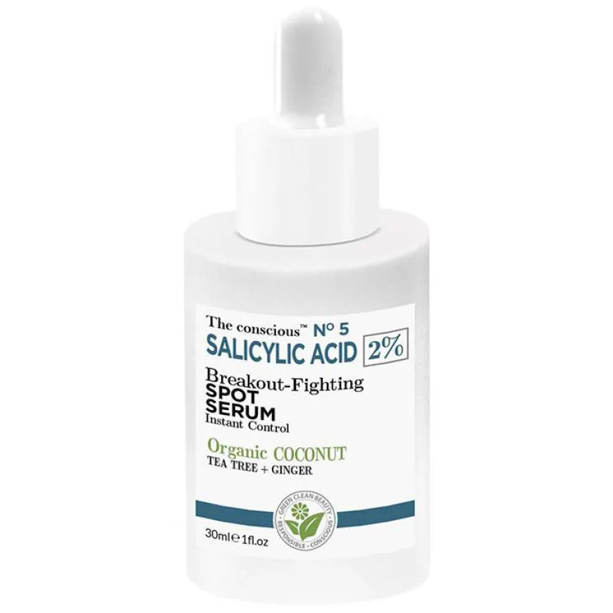 The Conscious™ Salicylic Acid Breakout-Fighting Spot Serum Organic Coconut er et serummed eksfolierende salisylsyre og økologisk kokosnøttolje som jobber målrettet mot flekker og bidrar til å redusere forekomsten av urenheter for en synlig jevnere og klarere hud.