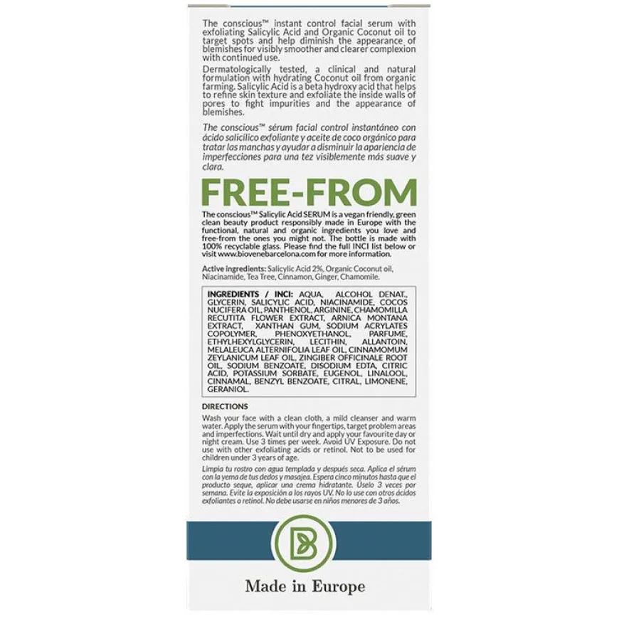 The Conscious™ er etregistrert varemerke, ansvarlig produsert av Biovène Barcelona (Biovene Cosmetics SL).Flasken er laget av 100 % resirkulerbart glass.