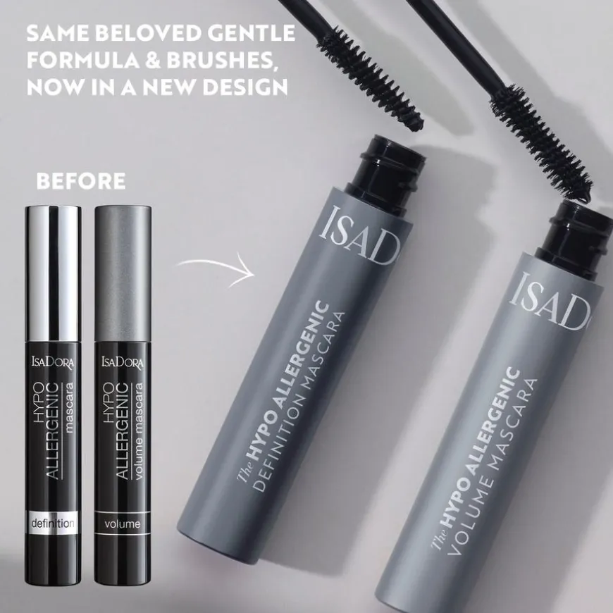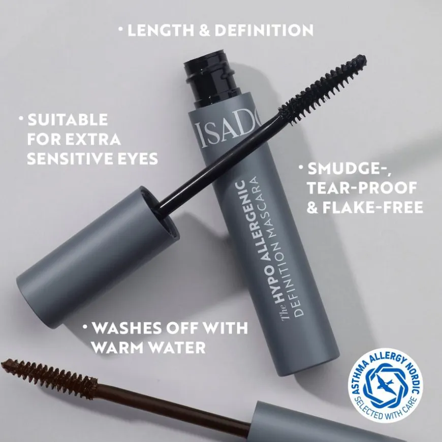 The Hypo Allergenic Definition Mascara fra IsaDora er en skånsom mascara som gir presis definisjon til vippene. Den er sertifisert av Asthma Allergy Nordic og er formulert med milde ingredienser som er egnet for ekstra sensitive øyne. Mascaraen er smudge-, tåre- og flassfri og kan enkelt vaskes av med varmt vann. Den spesialdesignede børsten med korte fibre separerer og definerer vippene for et naturlig resultat. Passer for deg med sensitive øyne eller kontaktlinsebrukere.