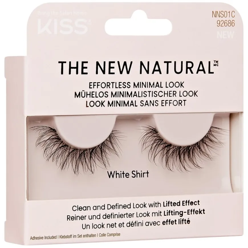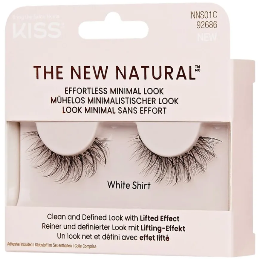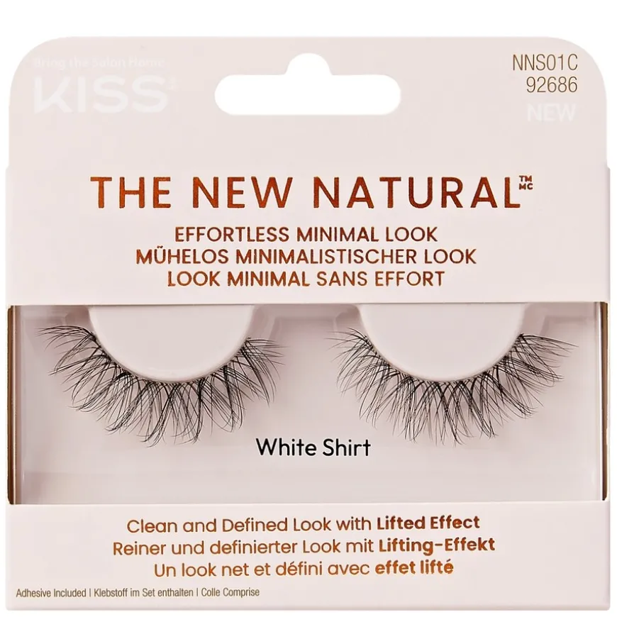 White Shirt er en helvippe med vippeløfteffekt for en ren, naturlig og definert look som blendes inn med dine egne vipper. Alt handler om The New Natural. KISS presenterer The New Natural False Eyelashes en ny vippekolleksjon, designet for en «no makeup, makeup»-estetikk. Denne trenden handler om feilfrie ufullkomne vipper, med ujevne, sparsomt fordelte vippemønstre og et tynnere vippebånd for en bemerkelsesverdig naturlig effekt.