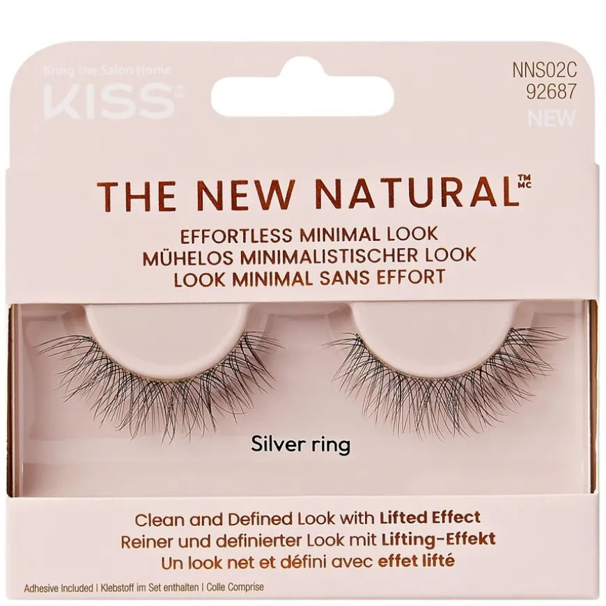 Alt handler om The New Natural. KISS presenterer The New Natural False Eyelashes en ny vippekolleksjon, designet for en «no makeup, makeup»-estetikk. Denne trenden handler om feilfrie ufullkomne vipper, med ujevne, sparsomt fordelte vippemønstre og et tynnere vippebånd for en bemerkelsesverdig naturlig effekt.