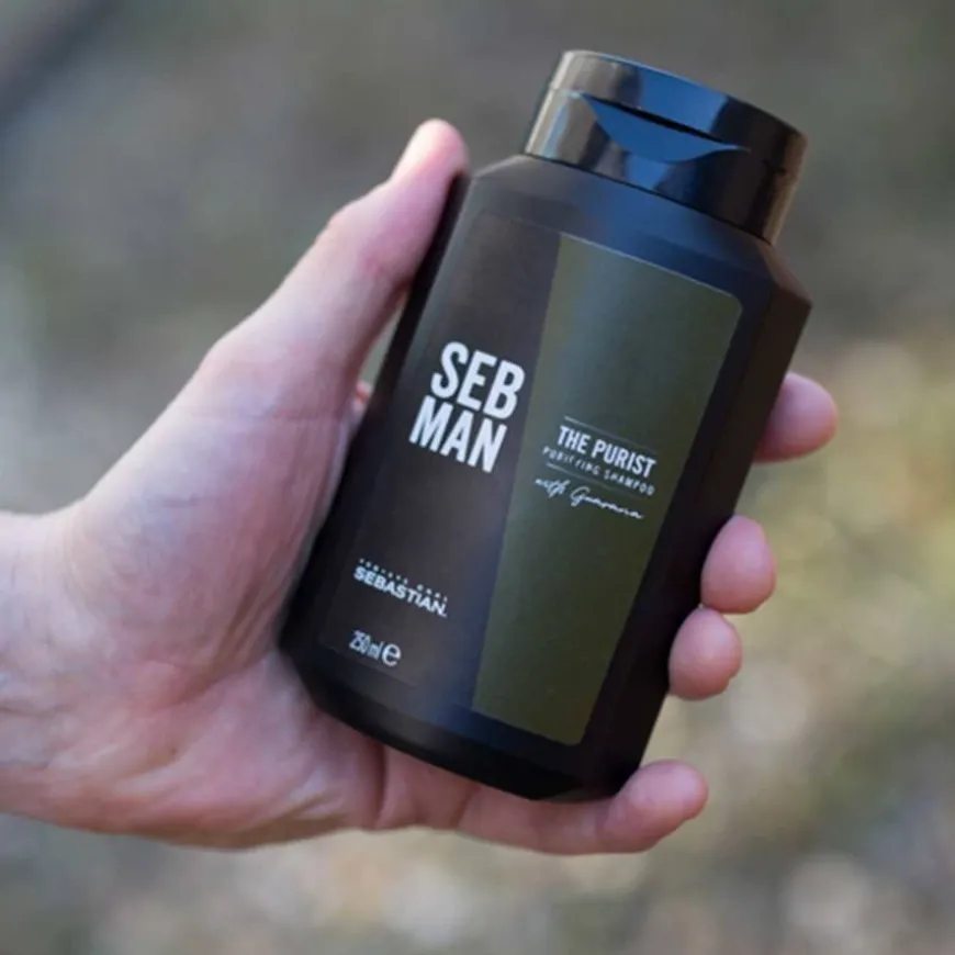 The Purist fra Seb Man er en shampoo med en lett rensende effekt på hår og hodebunn. Med Zinc Pyrithione som hjelper til med å bekjempe flass og reduserer kløe og irritasjon i hodebunnen. Passer for deg med tørr hodebunn og normalt til oljete hår. Med guaranaekstrakt og en stimulerende duft av bergamott og pink pepper.