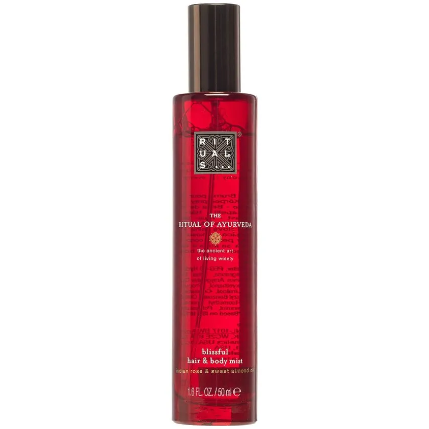 The Ritual Of Ayurveda Hair & Body Mist er en hår- og kroppsspray med en balanserende duft av indisk rose og mandelolje. Sprayen er alkoholfri og etterlater ikke flekker.