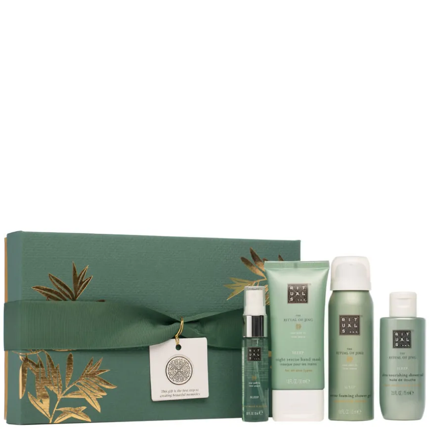 Rituals The Ritual Of Jing Gift Set Small er et luksuriøst gavesett designet for å hjelpe deg med å koble av og finne indre ro. Produktene er beriket med jujube og hellig lotus, som hjelper med å skape en avslappende atmosfære og fremme en god natts søvn.