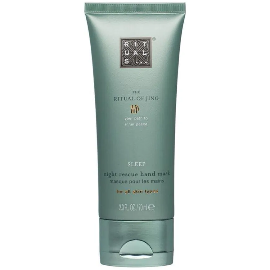 The Ritual of Jing Sleep Night Rescue Hand Mask er en håndmaske som gir hendene intensiv pleie samtidig som den bidrar til en avslappende natts søvn. Den rike og fuktighetsgivende formelen er beriket med sandeltre og lavendel, kjent for sine beroligende og søvnfremmende egenskaper. Duften av blomster og varme treaktige noter hjelper med å roe sansene, mens masken etterlater huden silkemyk og næret.