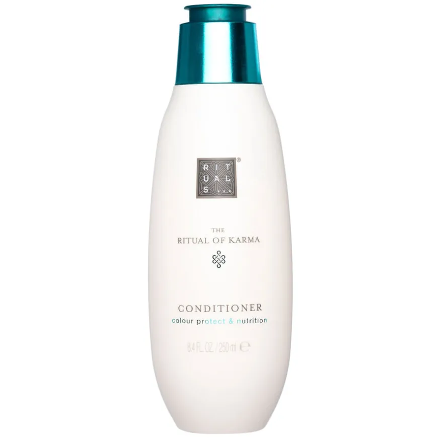The Ritual of Karma Conditioner er en fargebeskyttende balsam som tilfører næring, glans og beskyttelse til fargebehandlet hår. Beriket med solsikkefrøekstrakt og E-vitamin, hjelper den med å forhindre UV-skader, forlenge hårfargen og forbedre hårets naturlige glød. Risekstrakt og macadamiafrøolje gir ekstra fuktighet, styrker og reparerer håret, slik at det etterlates mykt, livlig og næret.