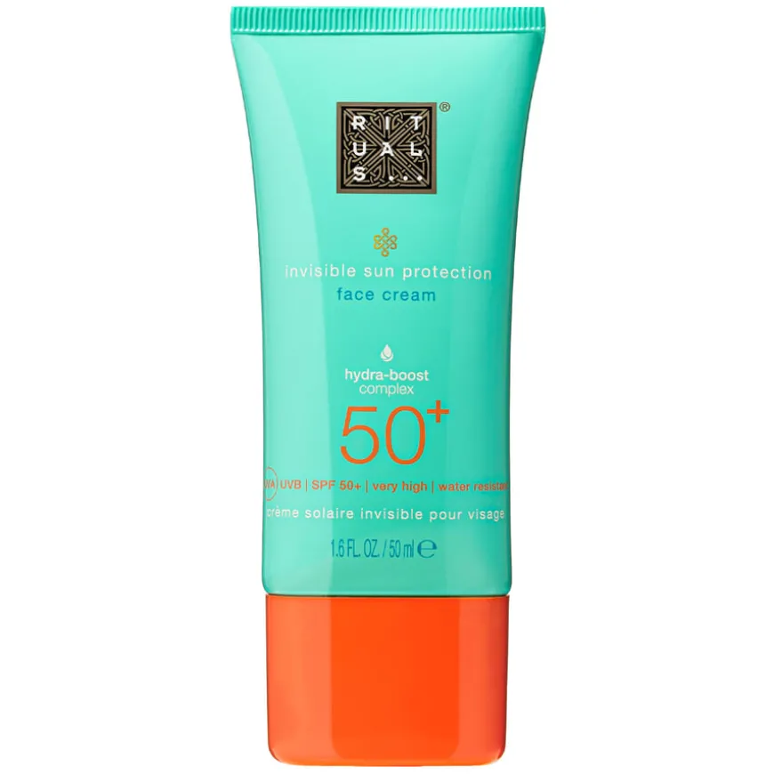 The Ritual Of Karma Sun Protection Face Cream SPF 50+ er en avansert ansiktskrem som kombinerer høy solbeskyttelse med intensiv fuktighetspleie. Den lette, vannavstøtende formelen absorberes raskt uten å etterlate hvite merker, og gir en matt finish som passer perfekt under sminke. Beriket med Hydra-Boost Complex, som inneholder aloe vera, squalan og algeekstrakter, bidrar kremen til å gjenopprette hudens smidighet og elastisitet. Antioxidanter som hvit te, E-vitamin og lotusblomst beskytter huden mot frie radikaler og for tidlig aldring forårsaket av UVA- og UVB-stråler.