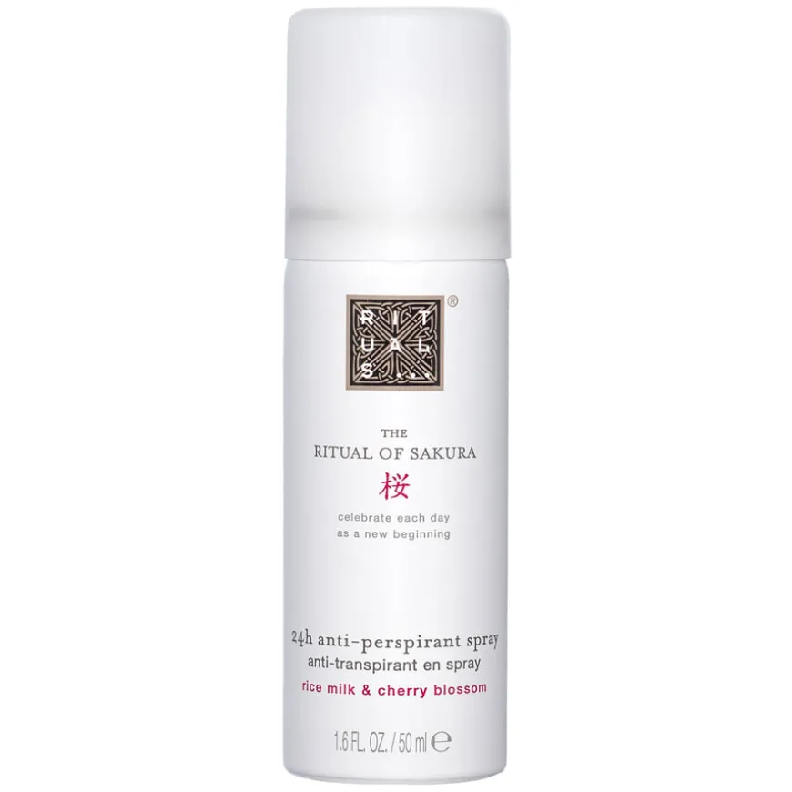 The Ritual Of Sakura Anti-Perspirant Spray gir 24-timers beskyttelse mot svette og lukt, samtidig som den pleier huden og sansene med en frisk og floral duft av kirsebærblomst. Formulert med rismelk, kjent for sine mykgjørende egenskaper, etterlater den huden behagelig tørr og velduftende hele dagen. Passer for alle hudtyper.