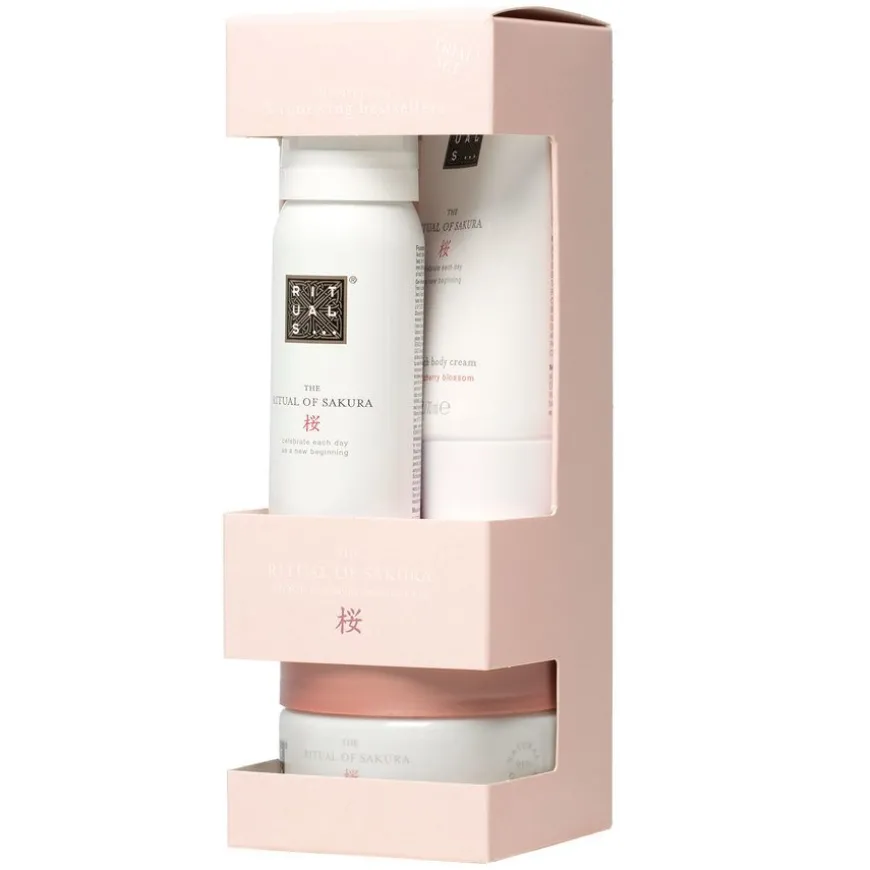 The Ritual Of Sakura Trial Set er et nydelig gavesett til deg selv eller noen du er glad i. Settet inneholder dusjskum, kroppskrem og kroppsskrubb. Produktene kommer i praktisk reisestørrelse og er utmerket for å prøve ut produktene eller for å ha dem med på reise.