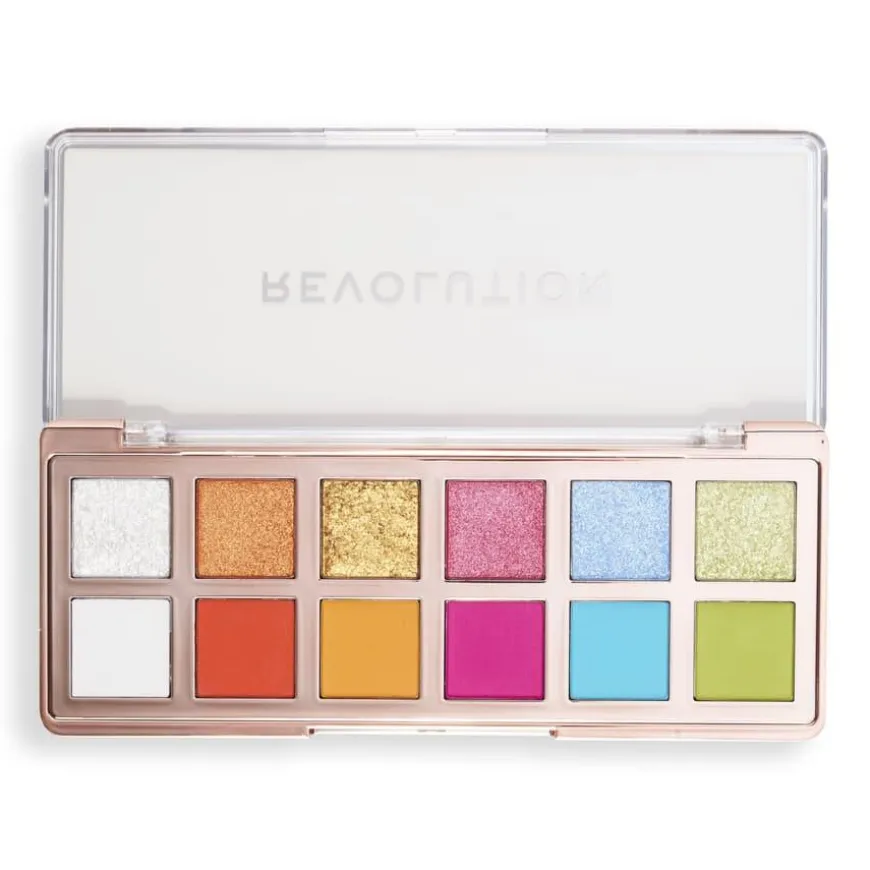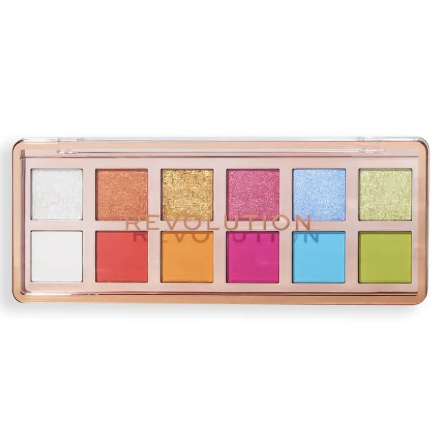 Revolution The Vibrant Icon Brights Palette er en dristig og fargerik øyenskyggepalett designet for maksimal fargeintensitet. Med 12 kompakte pans kombinerer paletten høypigmenterte krem-, matte- og shimmernyanser som gir en luksuriøs og smørmyk finish. Én rad med matte skygger og én rad med skimrende nyanser gjør det enkelt å skape alt fra hverdagslige til dramatiske looks. Inkluderer også en kremøyenskygge som kan brukes som base eller eyeliner for ekstra dybde. Den elegante roségull-emballasjen gjør denne paletten til et must-have for enhver sminkeelsker!
