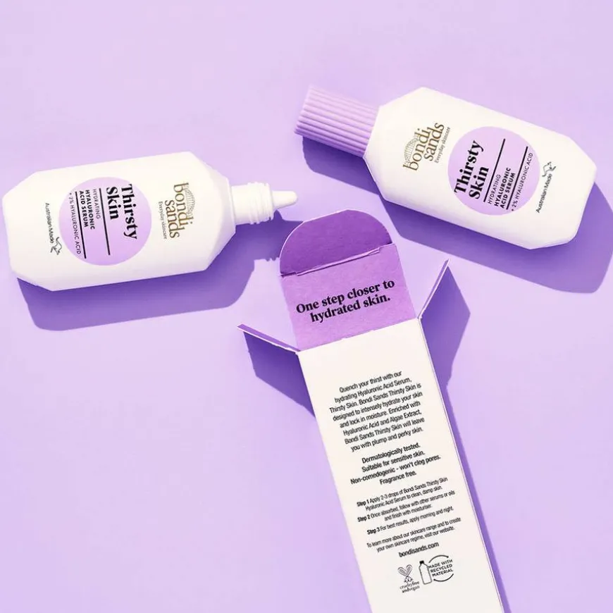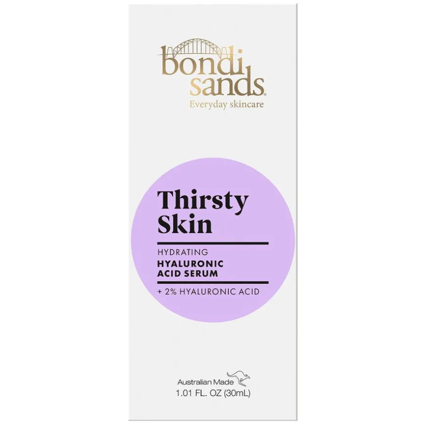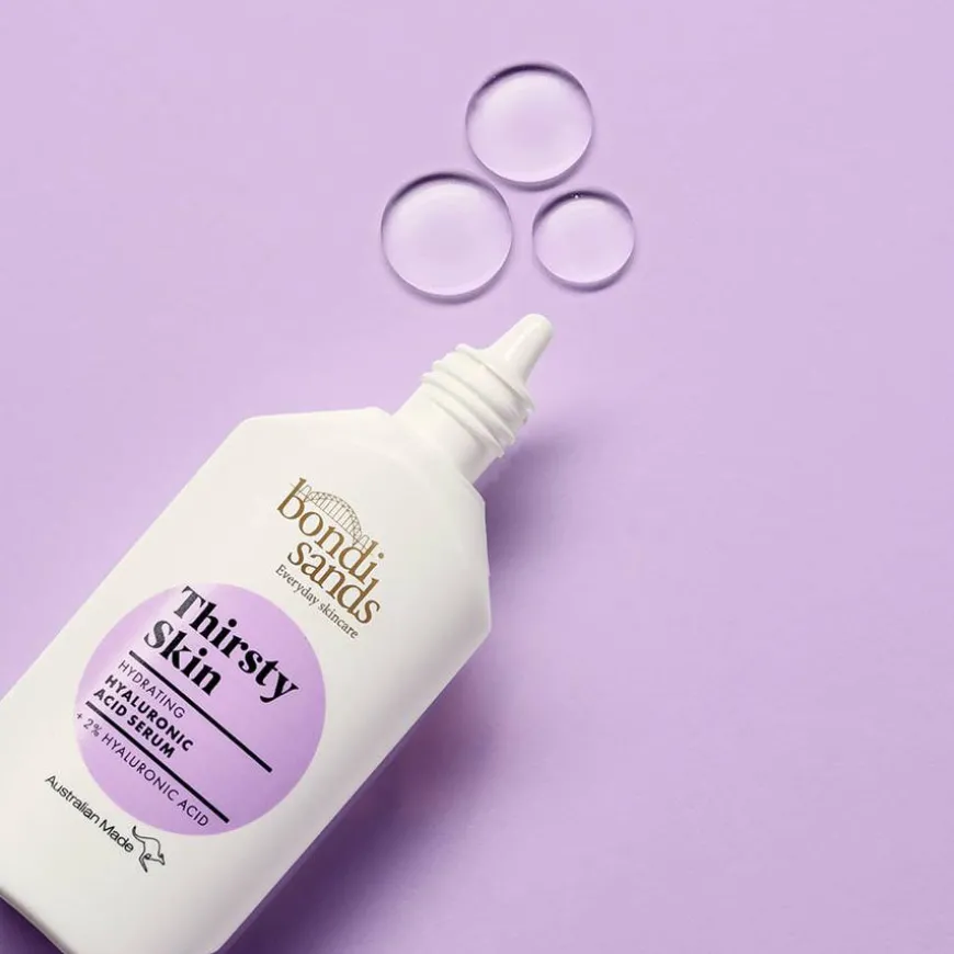 - Påfør 2–3 dråper av Bondi Sands Thirsty Skin Hyaluronic Acid Serum på ren og fuktig hud.
