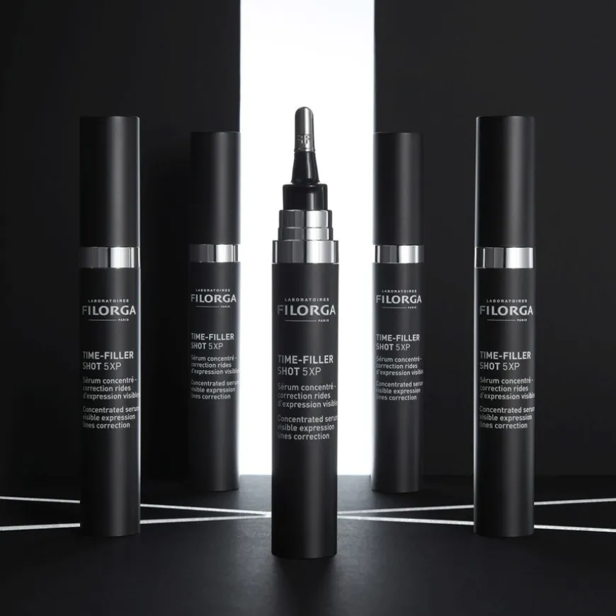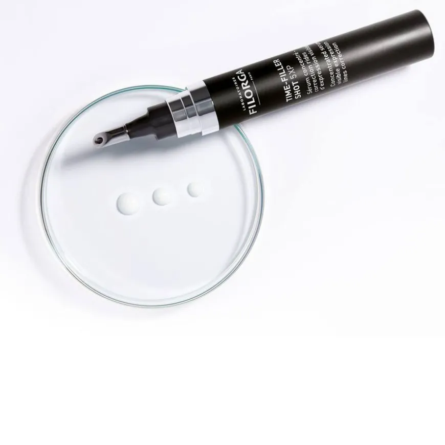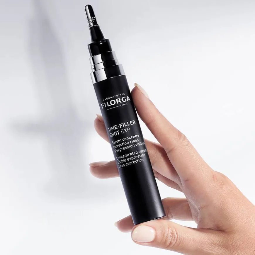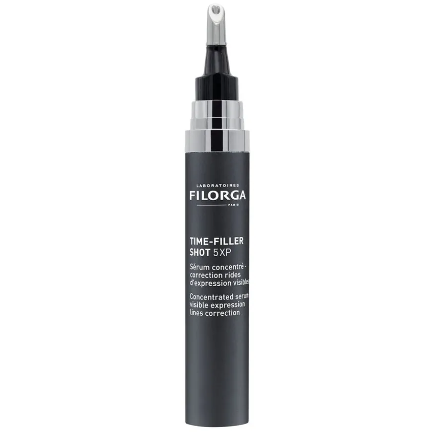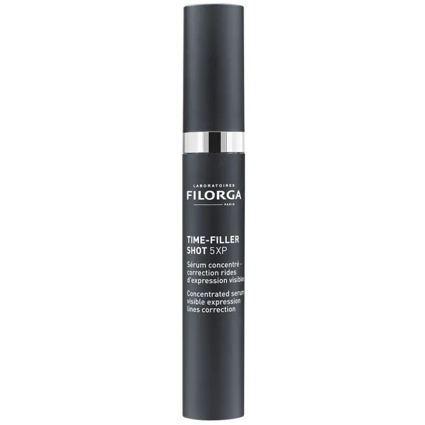 Time-Filler Shot 5XP er et konsentrert serum som korrigerer og motvirker rynker og uttrykkslinjer. Serumet inneholder en høykonsentrert formel (60 % aktive ingredienser) med nevropeptider som har en avslappende effekt på huden, og reduserer synligheten av fem forskjellige rynker og linjer forårsaket av gjentatte bevegelser av ansiktsmusklene. Pannenrynker, bekymringslinjer, latterlinjer (kråketær), rynker på overleppen og hengende munnviker (marionettlinjer) føles mindre fremtredende* og ansiktstrekk ser mer avslappet ut på bare syv dager**. Serumets kjølende metallapplikator gjør at du kan påføre formelen med presisjon – for effektiv punktbehandling med optimale resultater. Resultatet er fastere og jevnere hud med færre fremtredende rynker og linjer.