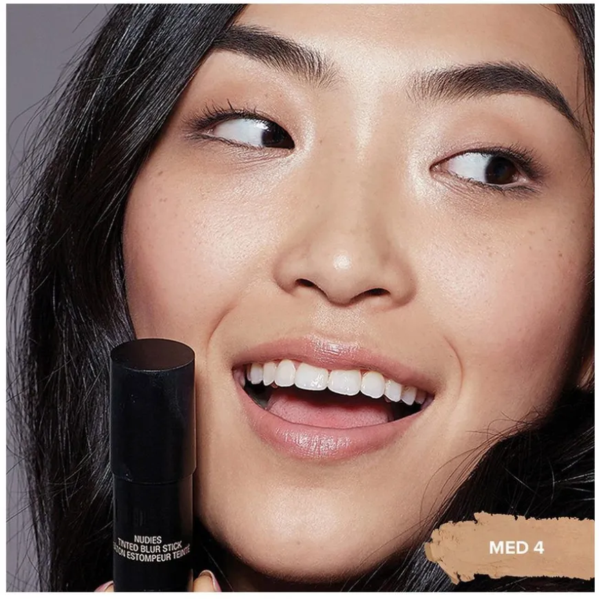 Nudies Tinted Blur Stick er en lett krem-til-pulver makeupstick som bruker soft-focus mineralteknologi for å jevne ut huden.Makeupen arbeider med huden din for å levere en naturlig fargetone, og benytter skyggejusterende pigmenter som smelter sammen med din egen hudfarge for en naturlig fargetone og skape en mykere og jevnere overflate.Denne makeupen har flere egenskaper og kan brukes for en lett over-all dekning, som en glattende primer, blottingkrem eller for å fremheve og konturere. Bruk lettere nyanser for å fremheve og dypere nyanser for definisjon og kontur.