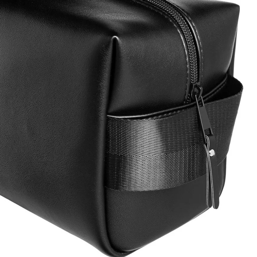 Toalettvesken er utformet med et stort rom og er laget av vegansk PU-materiale i svart, med en praktisk hank og glidelås. Toalettvesken fungerer perfekt til reise, men også til oppbevaring av produkter hjemme.