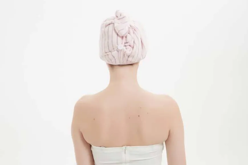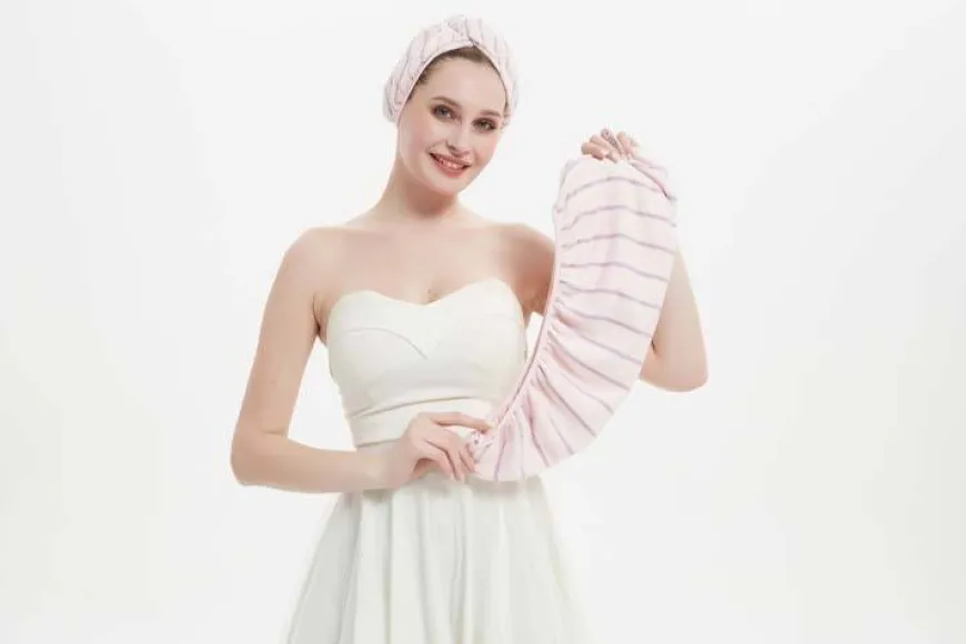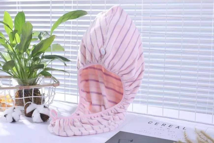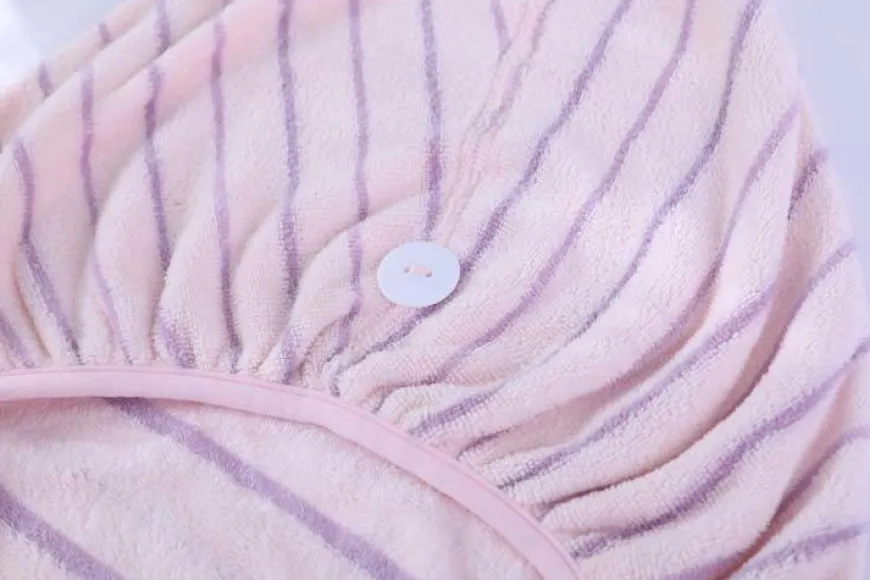 Et tosidig, hudvennlig, hurtigtørkende håndkle til håret. Håndklet sitter perfekt på hodet, og tørker håret raskere enn et vanlig håndkle gjør. Snu den rundt hodet og håret og fest håndkleet i den praktiske stroppen. Den venstre og høyre sømmen er sømløst skjøtet, og fjerner hele sykanten på det vanlige hårhåndkleet. Det er mer behagelig å ha på seg. Ved å bruke den beste elastiske stroppen for tiden, er den mer behagelig og hudvennlig og ser vakrere og mer elegant ut.