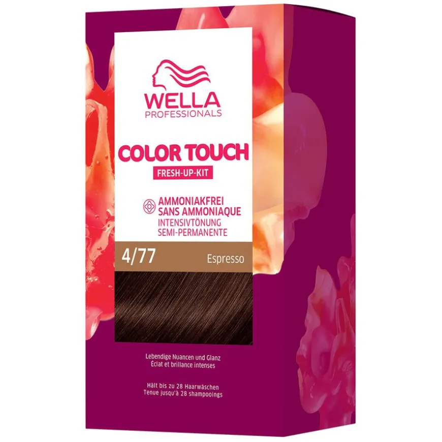 Color Touch Deep Brown Espresso 4/77 er en intensivtoning som gir oppsiktsvekkende glans med et naturlig fargeresultat. Dette profesjonelle hårfarge- og hårpleiesettet kan enkelt påføres hjemme, med et resultat på bare 20 minutter.