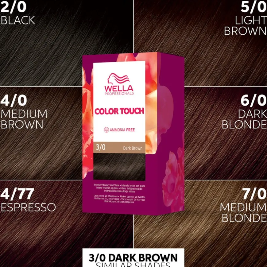Wella Professionals er det ledende salongfargemerket* i verden – betrodd av fagfolk, elsket av håret ditt. Få salongresultater hjemme med Color Touch Demi-Permanent Hair Color i Dark Brown. Avslutt med Wella Professionals Color Brilliance Shampoo og Color Brilliance Conditioner for best resultat.