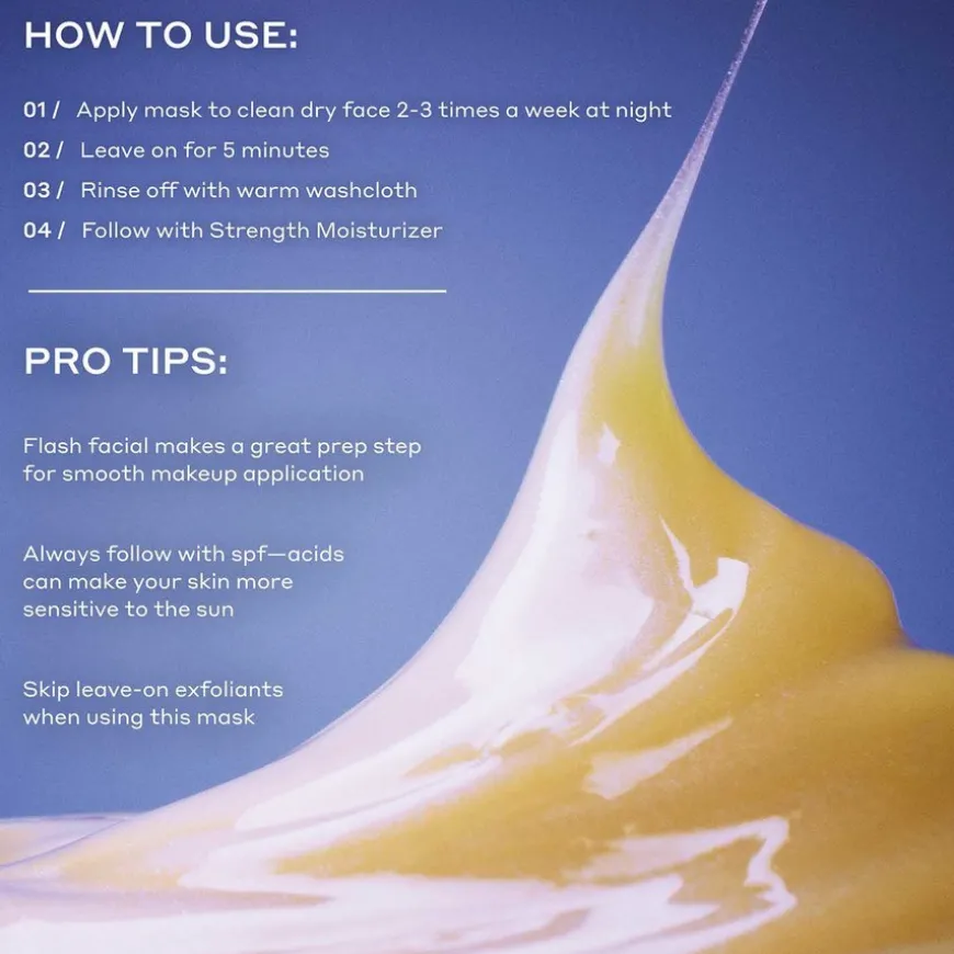 Ole Henriksen Transform Dewtopia 25% Acid Flash Facial er en kraftfull ansiktsmaske fullpakket med 25 % AHA- og PHA-syrer som jevner ut tekstur, lysner, reduserer fine linjer, rynker og porer, og forbedrer hudens klarhet på bare 5 minutter*. Denne kraftige ansiktsbehandlingen til hjemmebruk gjenoppretter huden og jobber mot matthet, misfarging, ujevn tekstur og hudtone. AHA- PHA- og BHA-syrer jobber sammen for å løsne og løfte døde hudceller og hjelper til med å redusere ujevnheter, mens beroligende aloe juice og skandinavisk rognebærekstrakt beroliger og gir næring til huden.