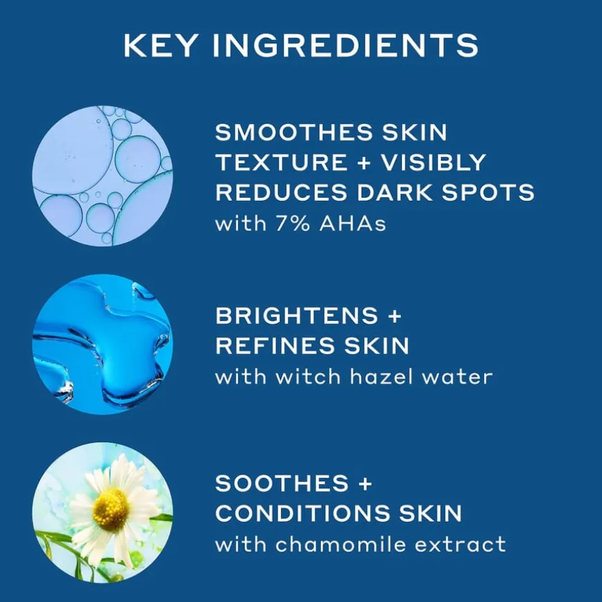 AQUA/WATER/EAU, GLYCOLIC ACID, HAMAMELIS VIRGINIANA (WITCH HAZEL) WATER, LACTIC ACID, SODIUM HYDROXIDE, POLYSORBATE 20, PHENOXYETHANOL, PARFUM/FRAGRANCE, PHYTIC ACID, ETHYLHEXYLGLYCERIN, GLYCERIN, CHAMOMILLA RECUTITA (MATRICARIA) FLOWER EXTRACT, CITRUS LIMON (LEMON) FRUIT EXTRACT, GLYCYRRHIZA GLABRA (LICORICE) ROOT EXTRACT, SACCHARUM OFFICINARUM (SUGAR CANE) EXTRACT, SANTALUM ALBUM (SANDALWOOD) EXTRACT, BENZOIC ACID, LEUCONOSTOC/RADISH ROOT FERMENT FILTRATE, TOCOPHEROL, CITRAL, LIMONENE, LINALOOL.