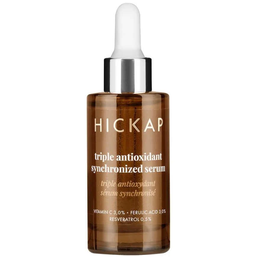 Triple Antioxidant Serum er ethøykonsentrert antioksidantserum som kombinerer tre av de kraftigste antioksidantene innen hudpleie: vitamin C, ferulinsyre og resveratrol. Serumet bidrar til å beskytte huden mot skadelige frie radikaler, samtidig som det motvirker pigmentering, gir glans, styrker hudens elastisitet og fasthet og bidrar til en jevnere hudtone.