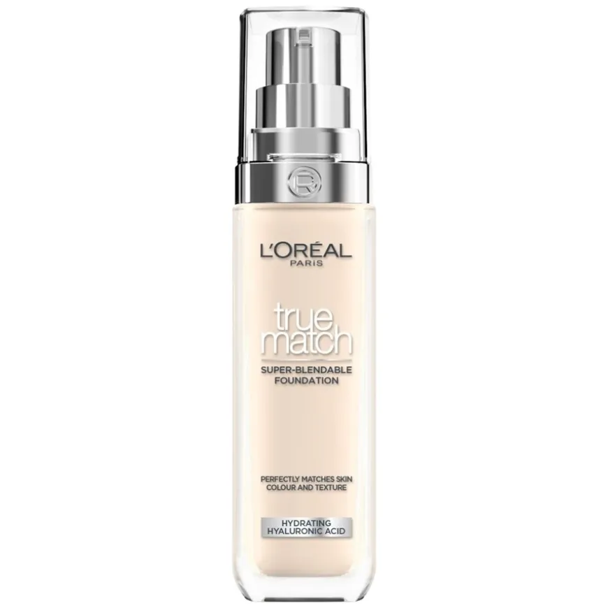 Finn din perfekte match med L’Oréal Paris True Match Super-blendable foundation. Formelen er superenkel å tone ut og tilpasser seg perfekt til hudtonen for å gi en plettfri look som ser naturlig ut. Den lette konsistensen gir lett dekning uten at huden ser pudderaktig ut eller at formelen kaker seg. Formelen består av en fuktighetsgivende base beriket med hyaluronsyre for 24 timers fukt*.