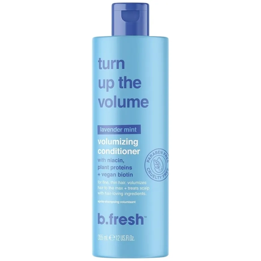 Turn Up The Volume Volumizing Conditioner er et volumgivende balsam utviklet for deg med fint og tynt hår. Balsamet gir fylde og liv til håret samtidig som det pleier hodebunnen. Beriket med niacin som stimulerer hodebunnen for sunnere hårvekst, samt planteproteiner og vegansk biotin som styrker og forbedrer hårets helse og glans. Den friske duften av lavendel og mynte gir en oppfriskende følelse ved hver vask. Produktet er 100% vegansk og fritt for parabener. Passer for alle med fint, flatt eller tynt hår som ønsker mer volum og styrke.