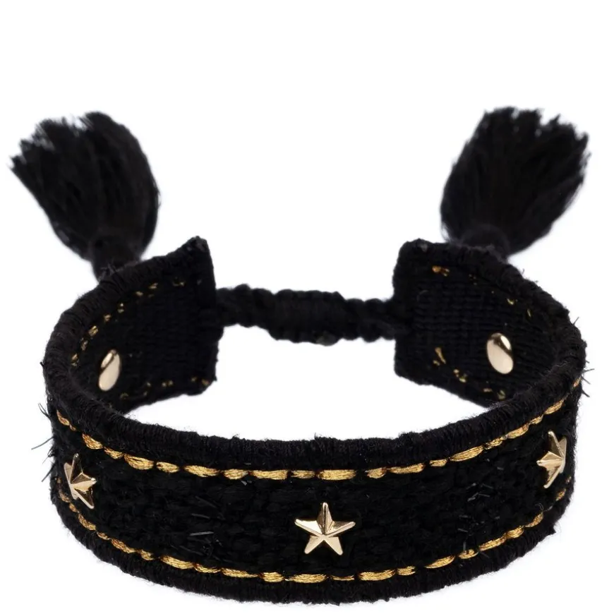 Tweed Friendship Bracelet With Star Studs er et vevd armbånd med stjerne-studser, et lekent og sjarmerende tilbehør som symboliserer tilknytning og glede. Perfekt for de som ønsker å uttrykke sin personlighet og vise frem sin vennskap på en trendy måte.