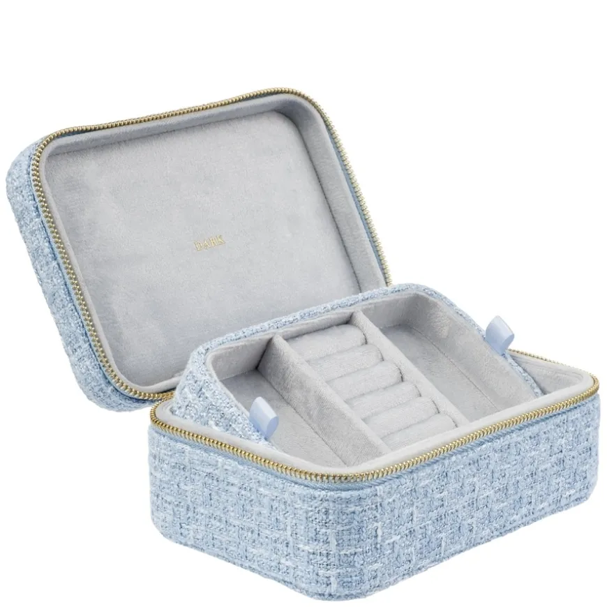 Tweed Jewellery Box er en sofistikert smykkeboks laget av klassisk tweedstoff og dekorert med solide detaljer i sinklegering. Med dimensjoner på 15 x 10 x 7 cm, gir den god plass til oppbevaring av smykker som ringer, kjeder og øredobber. Perfekt for deg som ønsker både funksjon og et elegant design på smykkeoppbevaringen din.