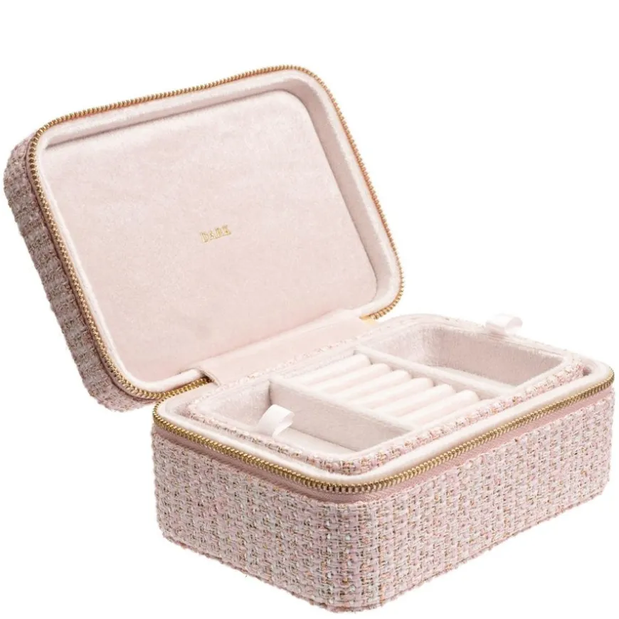 Tweed Jewellery Box er en sofistikert smykkeboks laget av klassisk tweedstoff og dekorert med solide detaljer i sinklegering. Med dimensjoner på 15 x 10 x 7 cm, gir den god plass til oppbevaring av smykker som ringer, kjeder og øredobber. Perfekt for deg som ønsker både funksjon og et elegant design på smykkeoppbevaringen din.