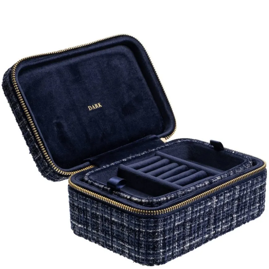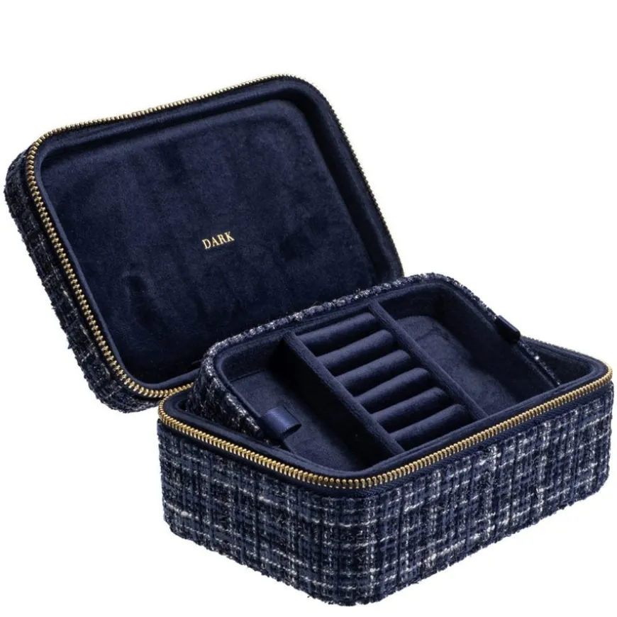 Tweed Jewellery Box er en sofistikert smykkeboks laget av klassisk tweedstoff og dekorert med solide detaljer i sinklegering. Med dimensjoner på 15 x 10 x 7 cm, gir den god plass til oppbevaring av smykker som ringer, kjeder og øredobber. Perfekt for deg som ønsker både funksjon og et elegant design på smykkeoppbevaringen din.