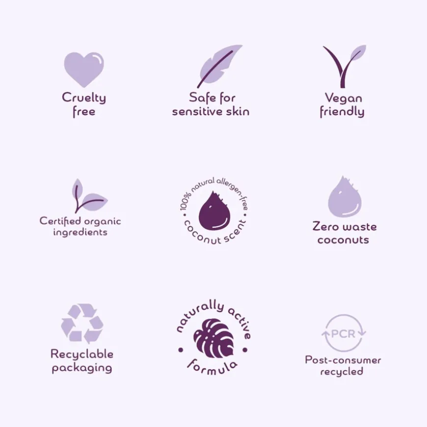 Sertifiserte økologiske ingredienser.Resirkulerbar innpakning. Sertifisert egnet for sensitiv og eksemutsatt hud. Cruelty-free.