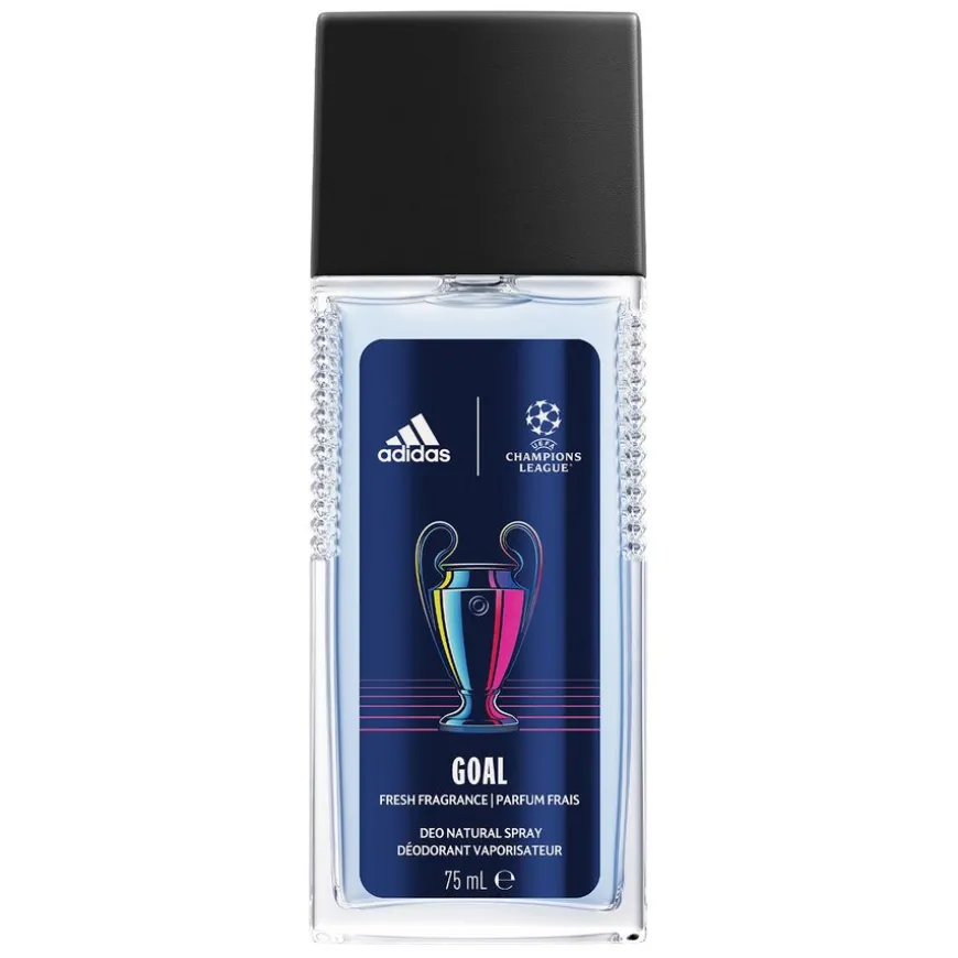 Adidas UEFA Goal Edition Deo Natural Spray feirer kraften, unikheten og kjærligheten til sporten. Denne friske duften med eukalyptus- og patchouliolje har en vegansk formel som gir en grønn fougère-duft. Flasken er laget med 25 % resirkulert glass, og korken består av 55 % resirkulert plast.