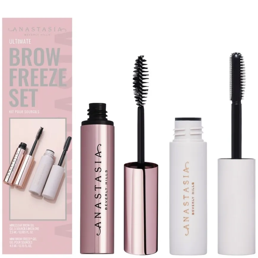 Ultimate Brow Freeze Set er den ultimate duoen for feilfritt stylede bryn, med universelle, transparente formler gir disse produktene allsidighet og langvarig fiksering, uansett brynstil. Mini Clear Brow Gel er ideell for en naturlig, fyldigere look, med en lett formel som holder brynene på plass hele dagen uten å flasse. Beriket med beroligende kamille, pleier den brynshårene og gir en naturlig, fuktet finish. Mini Brow Freeze® Gel tilbyr ekstrem fiksering og løft, selv for de groveste brynshårene. Den trippelsidige applikatoren og mikrobørsten sørger for presisjon, separasjon og en fjærlett effekt. Den hurtigtørkende, ikke-klissete formelen sikrer langvarige resultater og holder brynene perfekte hele dagen. Begge produktene er cruelty-free, veganske og passer for alle som ønsker naturlige eller dramatiske brynslooks.